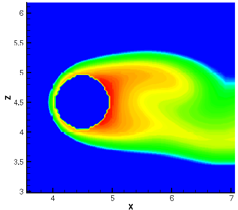 the modified LES code, taking into account the body presence [2].